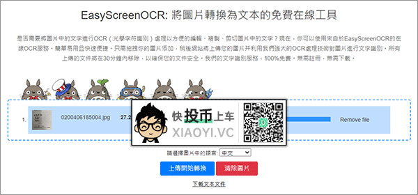 正在线版 | EasyScreenOCR「EasyScreenOCR」一款免费的正在线「OCR」笔朱识别,无需注册。尽管是海外出品,但对中文识别成效还是可以的,官方默示上传的文件将正在30分钟内主动增除,不会糊口生涯你的文件。