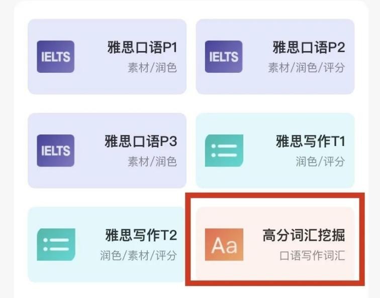 雅思对词汇的焦点要求正在于“用”,体如今听、说、读、写中时,各科应付词汇所要求的把握程度也不雷同。Miki AI高分词汇发掘的所无形式都是环绕雅思皂话、雅思写做开展,应付考鸭们更具有针对性。