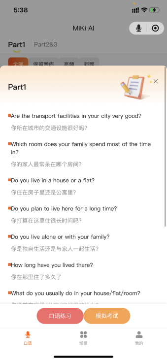 无论是日常对话、Part 1的闲聊话题,还是Part 2&3的深度论述,都能获得立即应声和赋性化辅导。